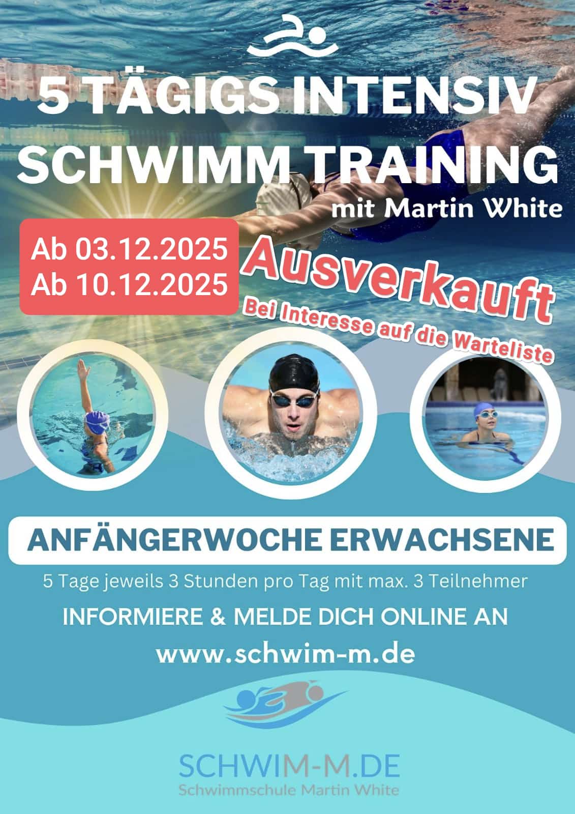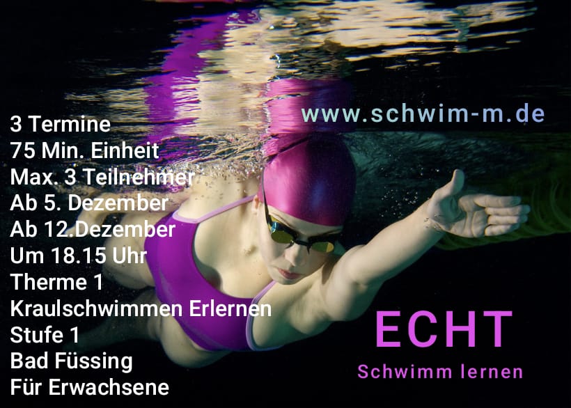2 Intensiv-Wochen für Nichtschwimmer im Dezember sind bereits ausgebucht. Es gibt nur 3 Plätze pro Kurs.