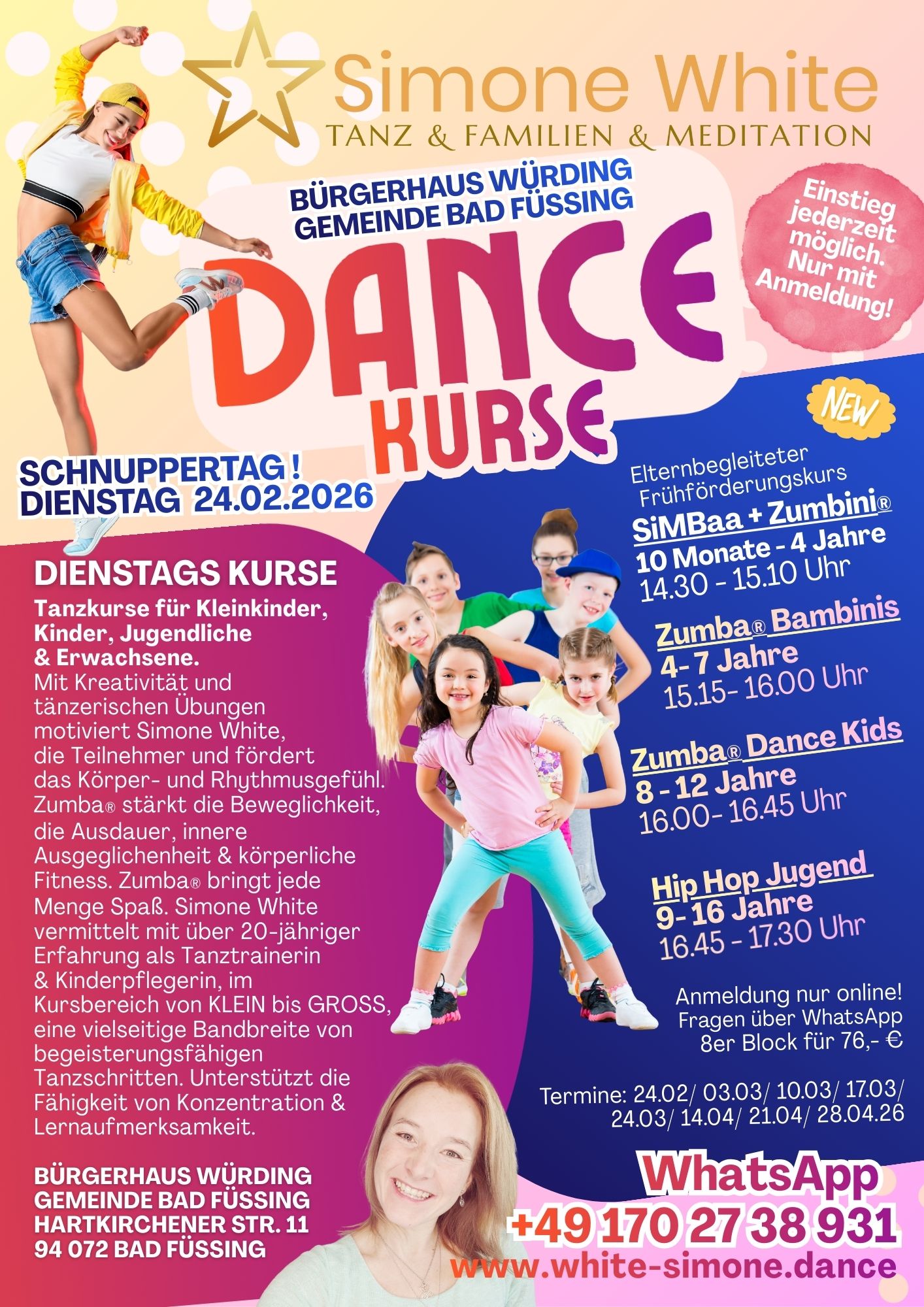 • Simone (meine Frau) hat sich endlich entschieden und einen Standort in meiner Nähe gefunden. Ab Ende Februar beginnt sie mit den ersten Tanzkursen in Würding/Bad Füssing.