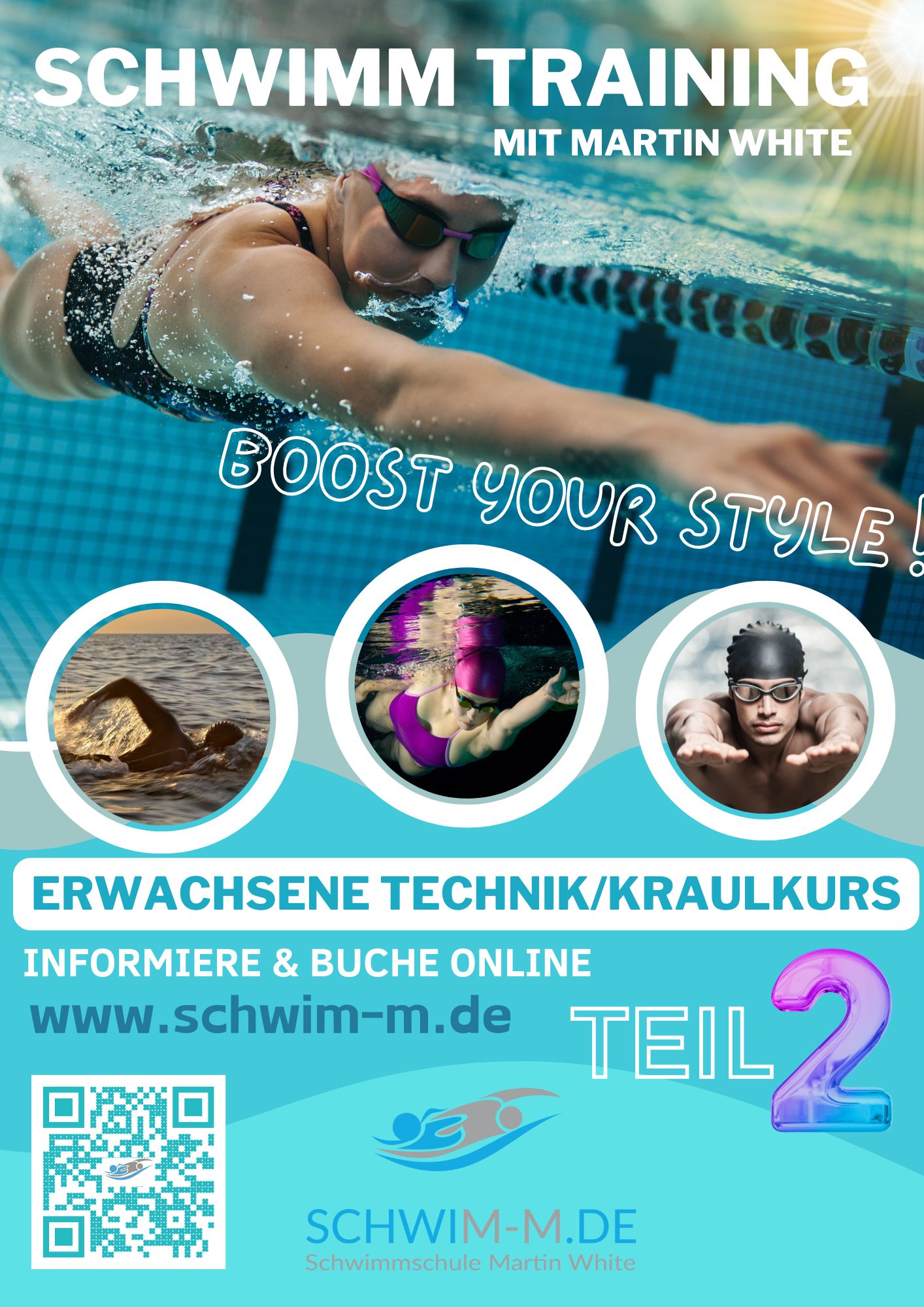 • Es gibt gleich einige Angebote für das Kraulen erlernen, bzw. Technik-/Kraul-Kurs Stufe1 (https://www.schwim-m.de/erwachsene-technik-kraulkurs/)