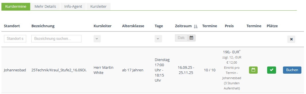 Es gibt generell 2 Sparten für Erwachsene: Nichtschwimmer/Anfänger und reine Kraul/Technikkurs, bzw. Training.